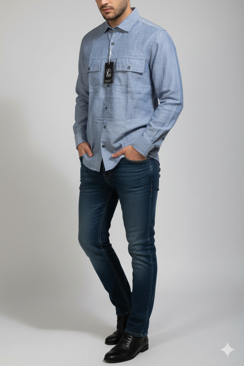 Home » Shop » Regular full sleeve Ash Gray Denim Shirt Double Pocket