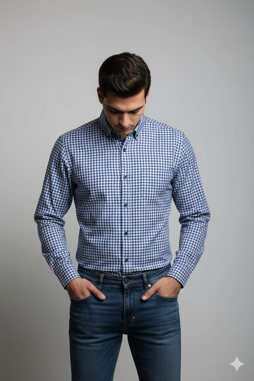Home » Shop » Regular full sleeve check shirt White and Blue