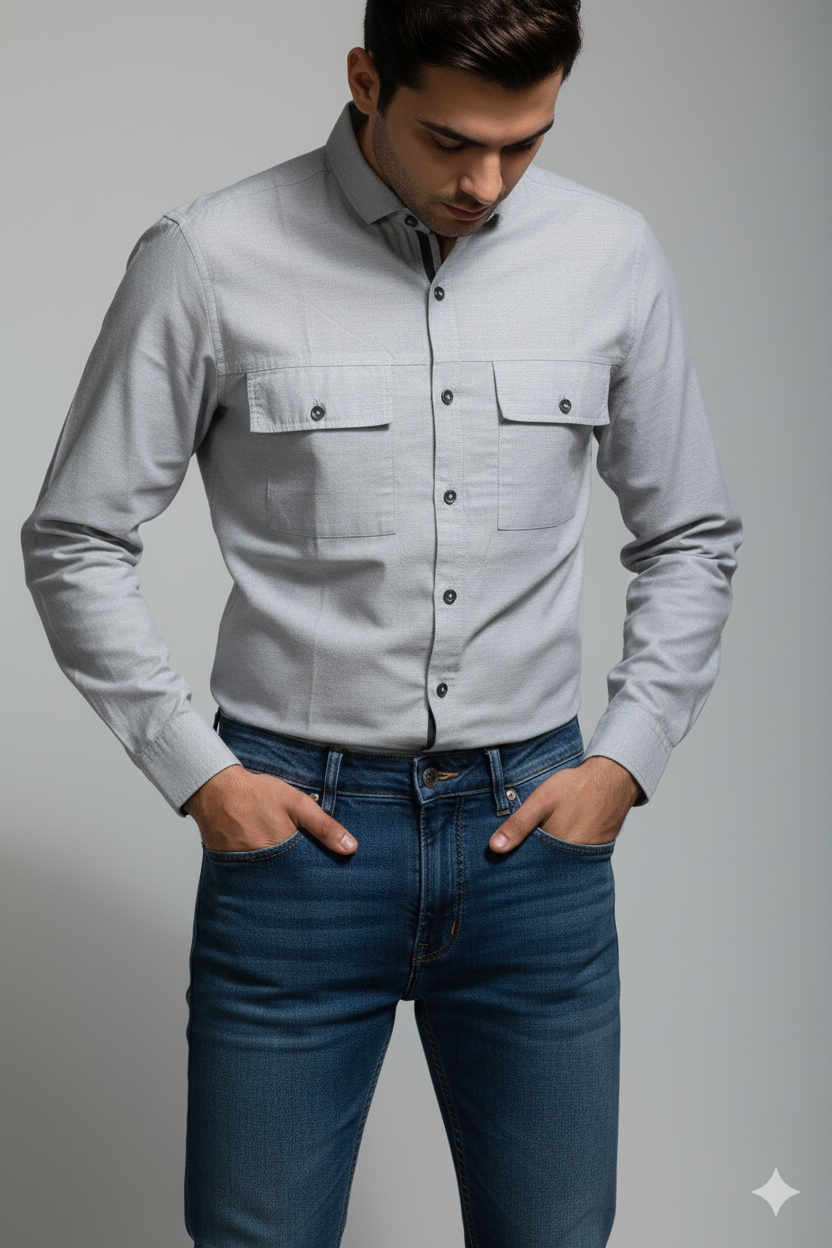 Home » Shop » Regular full sleeve Plain Gray Shirt Double Pocket