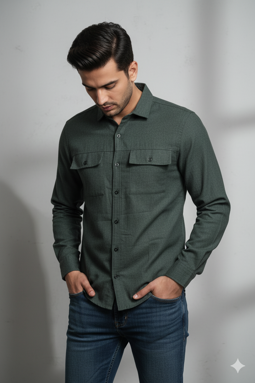 Home » Shop » Regular full sleeve Plain Kai Green Shirt Double Pocket
